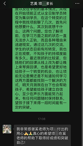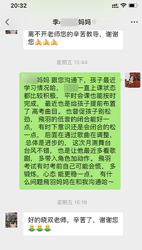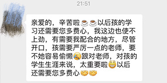 教务老师会定期与学员、学员家长进行最细致的沟通,也会随时接收学员家长们的信息、电话,解决学员们遇到的突发问题!