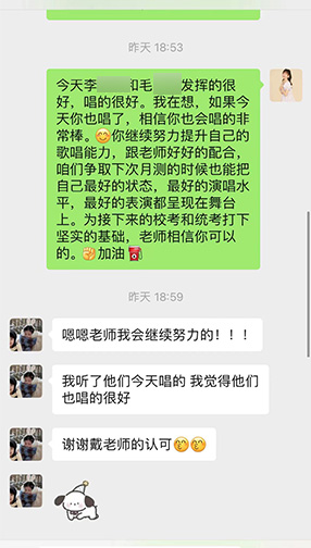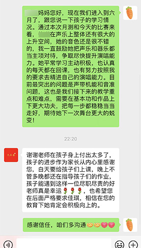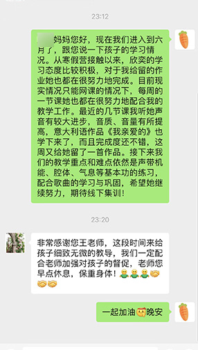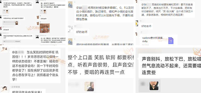 艺美音乐设置二十四小时回课打卡机制,此次寒假集训营学员将会有专属回课群,学+练同步进行,由艺美音乐老师专业点评,将学员专业问题及时解决,让艺美音乐学员学有所成!