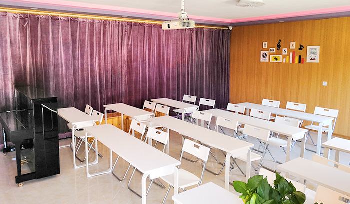 160余间专业音乐教室,占地面积近百亩,每间都配备的钢琴,完备的多媒体教学装置,数量不多的整齐桌椅,教室宽敞明亮,简洁大方,现代化的教学设施,给同学们提供充足的练琴、练声时间与环境。