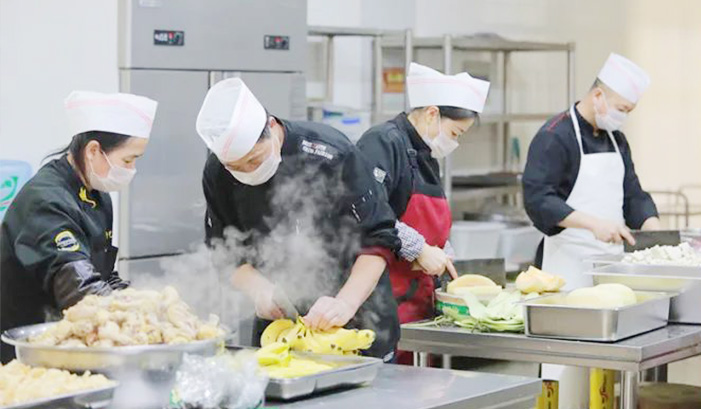 干净的桌布,简约复古风的装修格调,环境华丽的餐厅。营养搭配均衡,品类丰富,食堂一共有上下两层。厨师专门定制菜谱,并且会定期更新。单独配制营养餐,卫生安全。