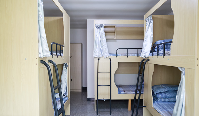 简单温馨的学生宿舍,宿舍分为6人间/4人间,报到随机安排,阳光充足,温暖舒适。简约典雅的布置格局,精致华贵的装修风格,洗浴,厕所,一应俱全。